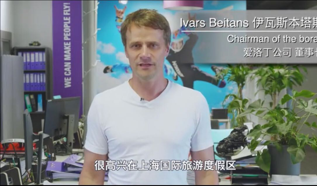 爱洛丁公司首席执行官Ivars先生从里加为首飞仪式发来祝贺视频,他表示,“爱洛丁公司为这一在上海国际旅游度假区落地的新项目顺利开业而倍感自豪,爱洛丁公司将继续致力于用科技满足每个人的飞行梦想!”